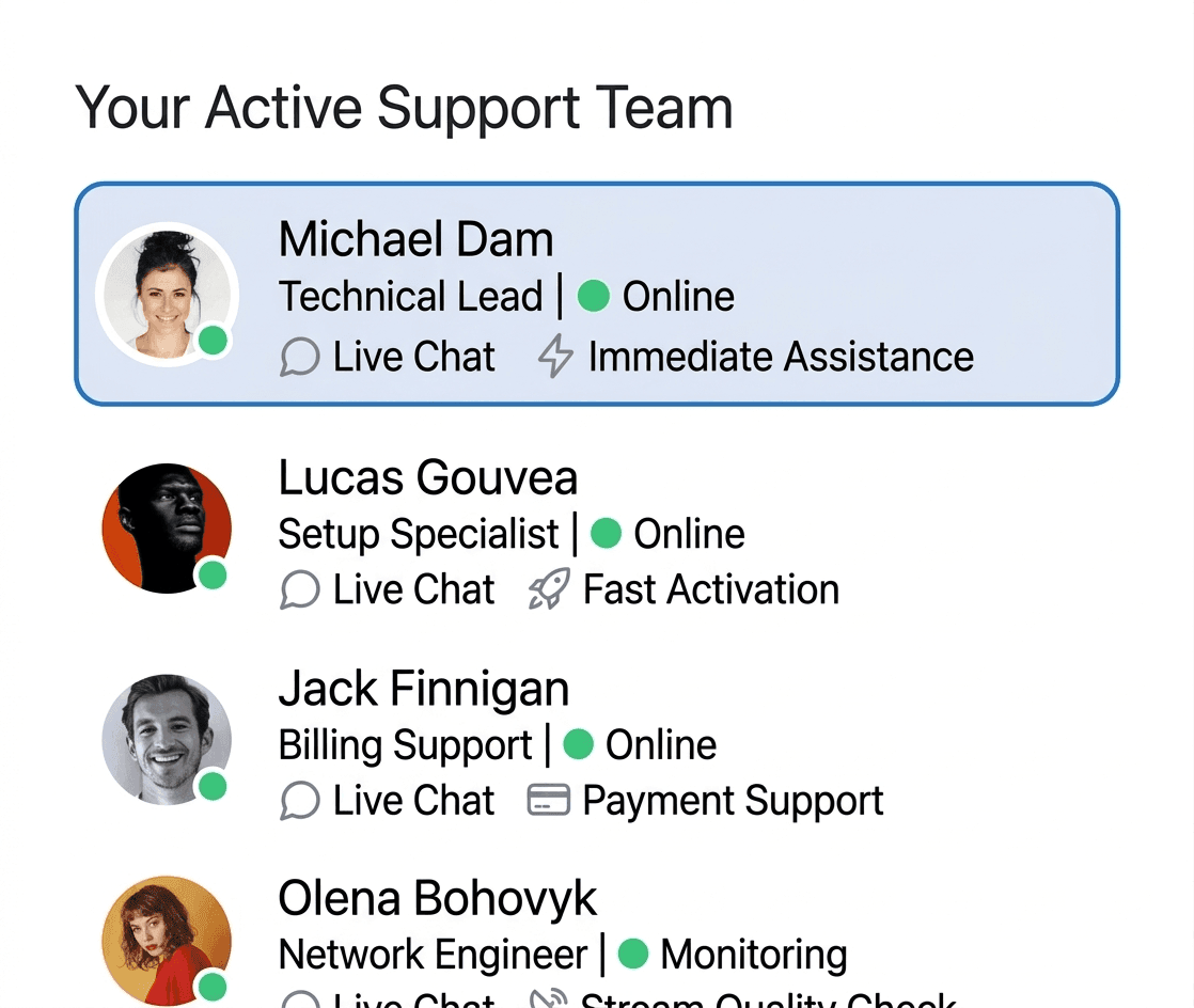 Our dedicated technical team is available 24/7 to ensure your streaming experience is flawless. From setup to troubleshooting, we’ve got you covered.